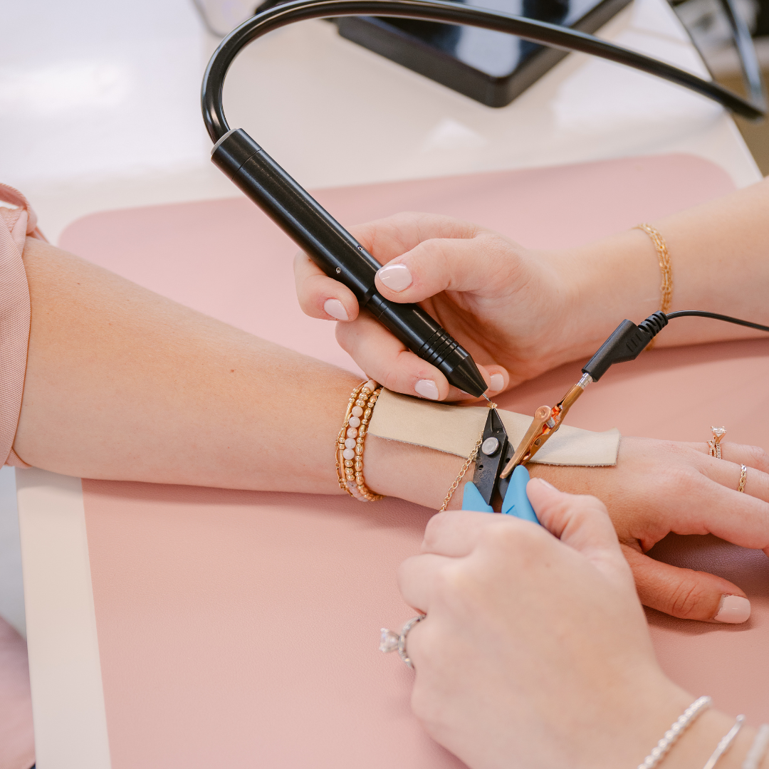 We believe everyone deserves jewelry that fits them perfectly. Part of the permanent jewelry experience is getting a piece of jewelry that is custom-fitted to you. We don’t charge a different price based on the size of your wrist.